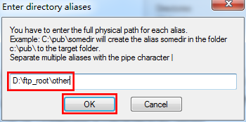 FileZilla Server的虛擬目錄設(shè)置與其它FTP服務(wù)器軟件有所不同。在FileZilla Server中設(shè)置虛擬目錄,必須采用FTP根目錄+虛擬目錄名的形式來(lái)命名alias別名。