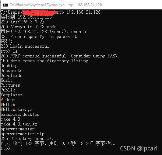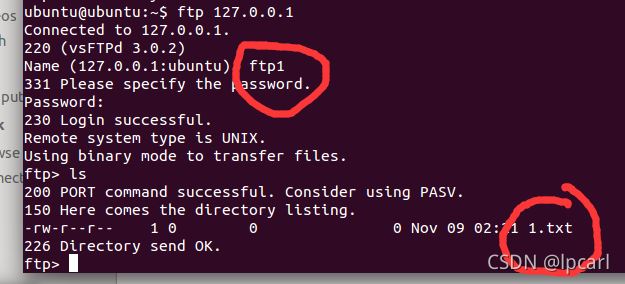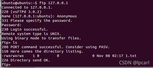 ftp 127.0.0.1然后輸入用戶名Anonymous最后輸入ls如果初現如圖所示的效果即代表創建成功