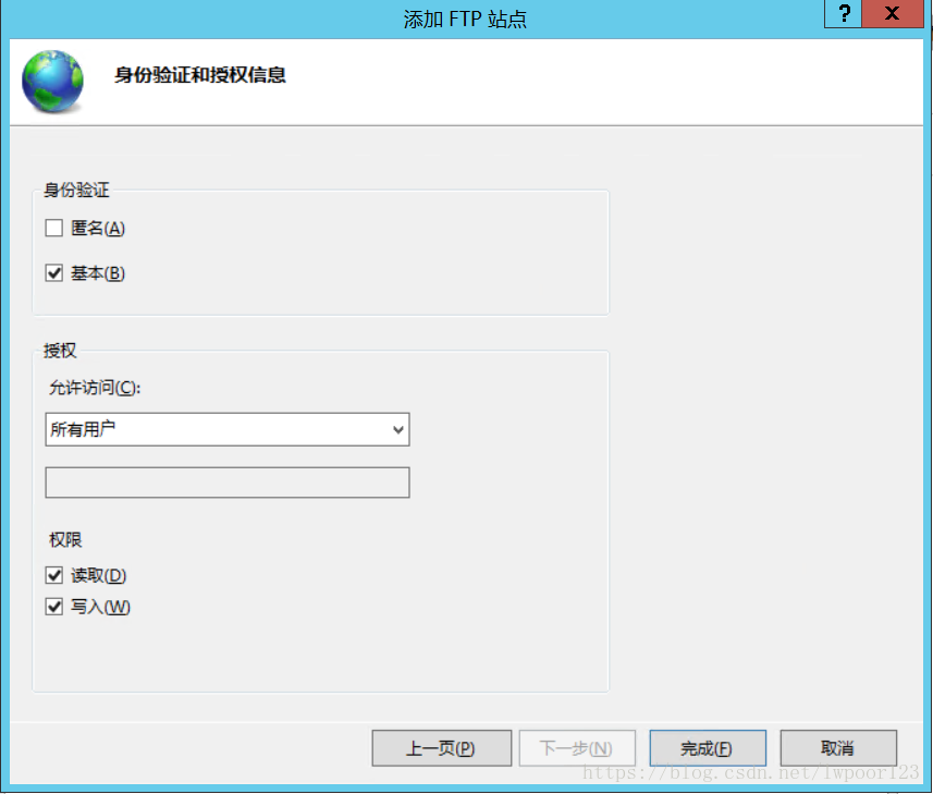 5、選擇權限:讀取、寫入;基本身份驗