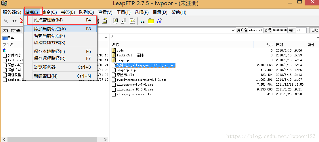 leadftp解壓后可直接使用,選擇站點>站點管理器