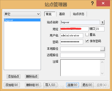 輸入服務器ip,登錄服務器時的用戶名和密碼鏈接,默認端口是21