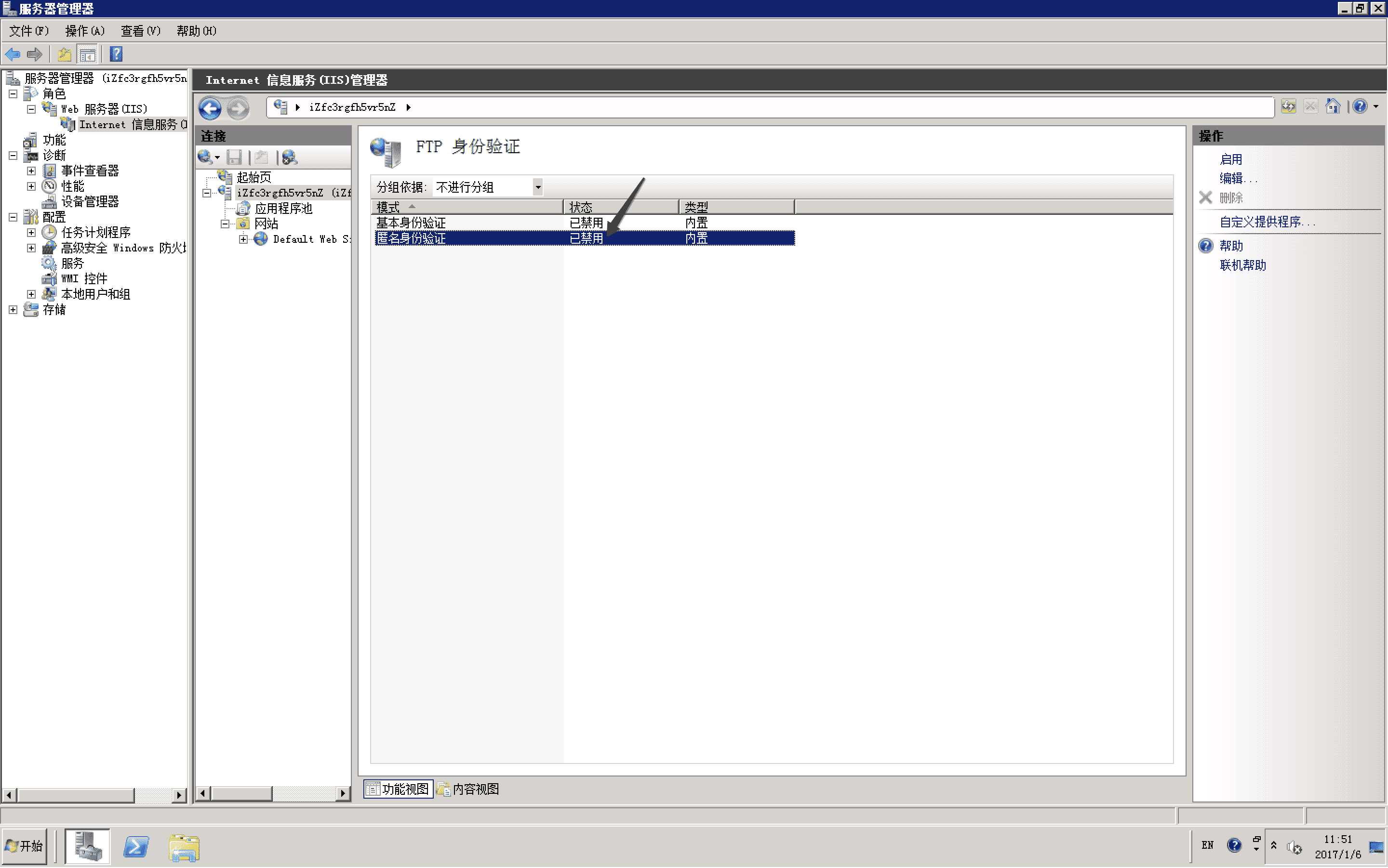 Windows 2008 系統 FTP 禁用匿名登錄服務