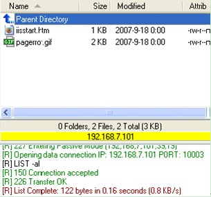 登錄成功后,可以看到剛才制定的FTP目錄下的文件,并具有相應(yīng)的上傳、下載權(quán)限。