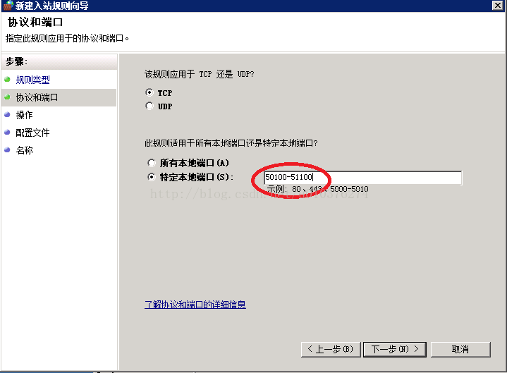 然后重復坑3在入站規則里打開21端口的過程,打開限定好的Passive mode端口范圍,唯一的不同就是在下面這里輸入50100-51100,給這條規則命名如FileZilla - Passive FTP Ports,再用其他機器訪問就沒有任何阻礙啦~