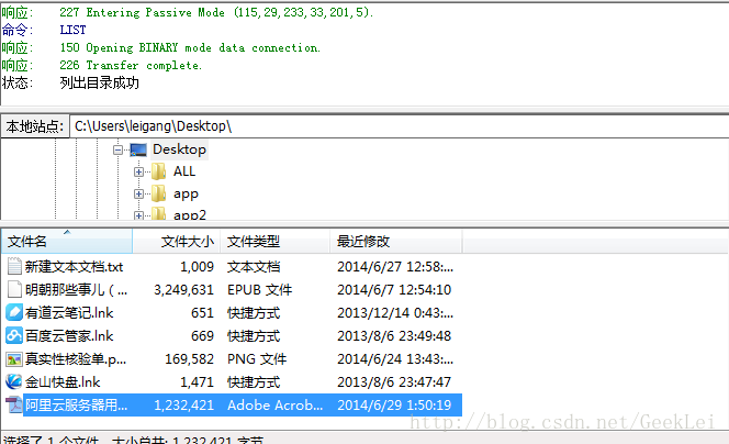4.上傳完成,進入服務器主機的FTP站點目錄,可以看到文件傳輸成功。