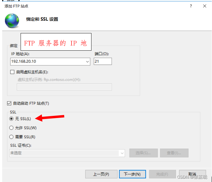 這里所演示的是最簡單的FTP所以ssl證書選擇無