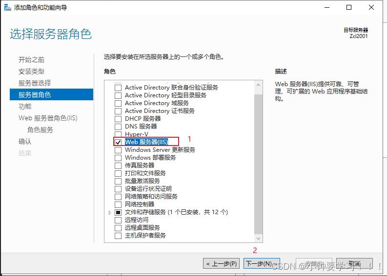 5、一直默認(rèn)下一步到服務(wù)器角色,選擇Web服務(wù)器(IIS)