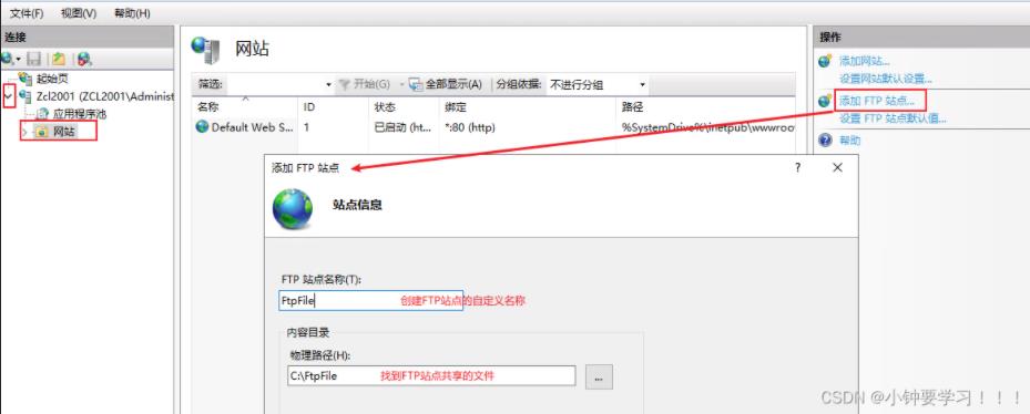 步驟四:添加并設(shè)置FTP站點(diǎn)