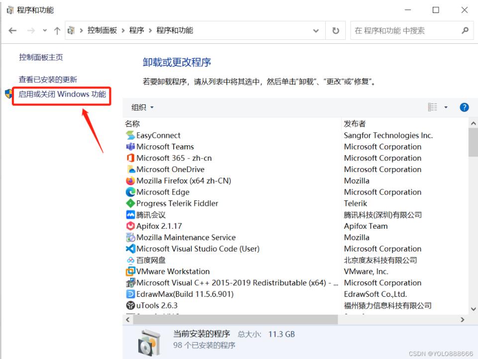 2、點擊 啟用或關閉Windows功能