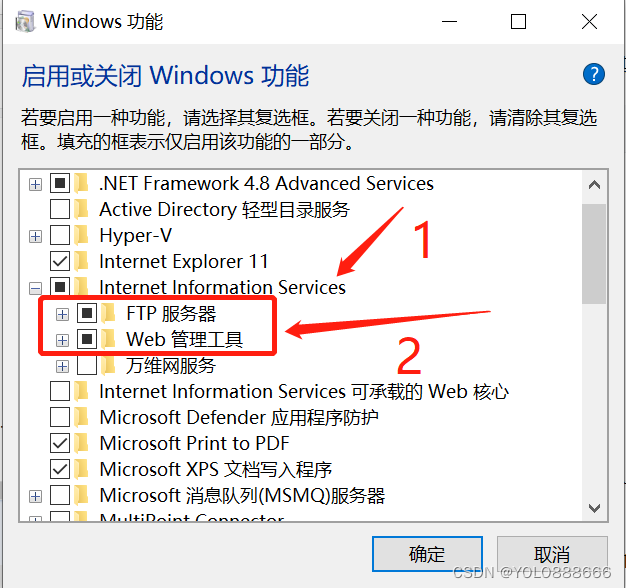 (如果不勾選Web管理工具,則不會沒有IIS管理工具)