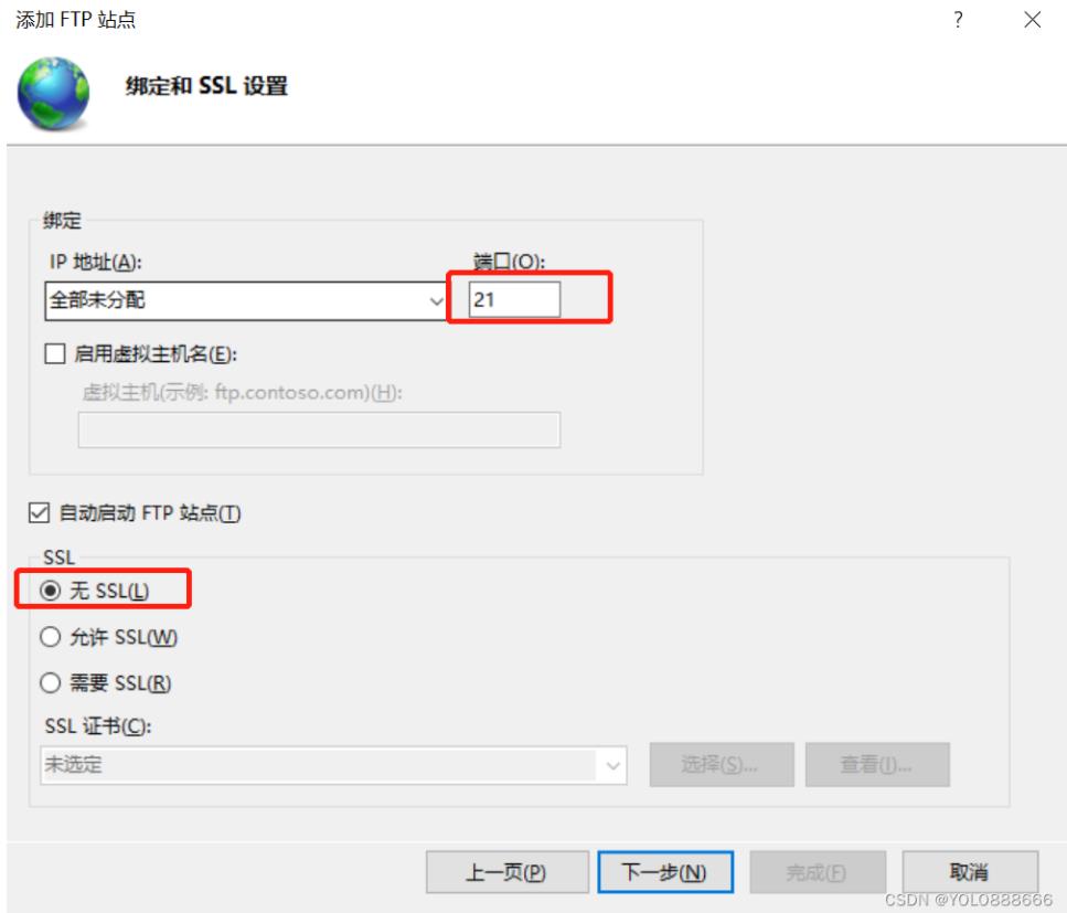 10、確保21端口沒有被占用,SSL加密可選擇無