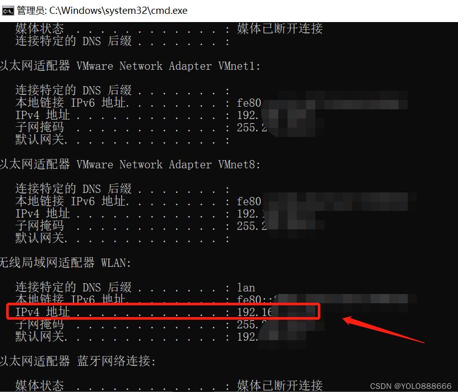 12、查看ipv4地址(可以使用 window鍵+R → 輸入 cmd 回車 → ipconfig 查看 )