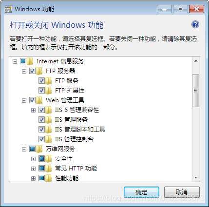 開始菜單→控制面板→程序→程序和功能→打開或關閉Windows功能→Internet服務