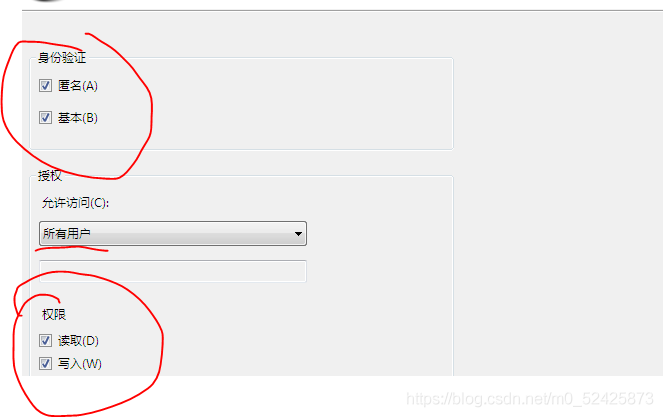 身份驗證選擇“全選”,允許訪問“所有用戶”,權限“讀取”和“寫入”全部勾選。