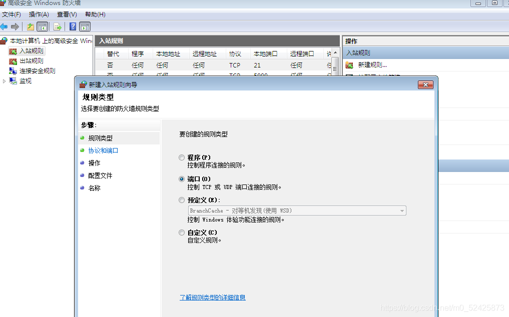 第六步:防火墻打開“21”端口號