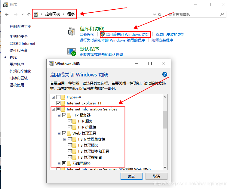 前言:搭建之前,先確保你的電腦上:控制面板 >> 程序 >> 啟用或關閉windows功能 >> windows功能彈窗里面包含 Internet Information Services 這個選項功能,否則無法搭建,如果沒有的話,建議重裝系統,因為有些精簡版的非正版windows,這個功能被精簡掉了。