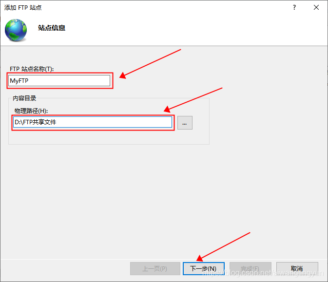 3、設置站點名稱和 FTP 共享目錄