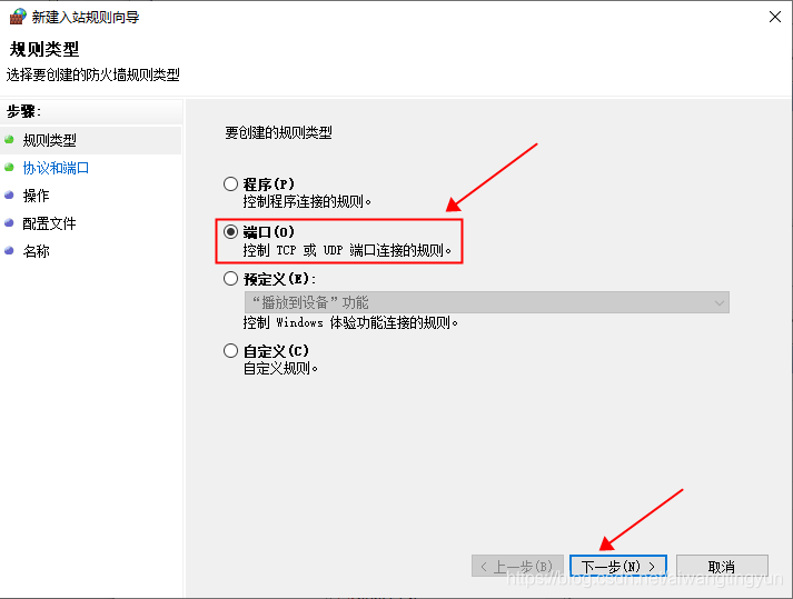 選擇規則類型為"端口"