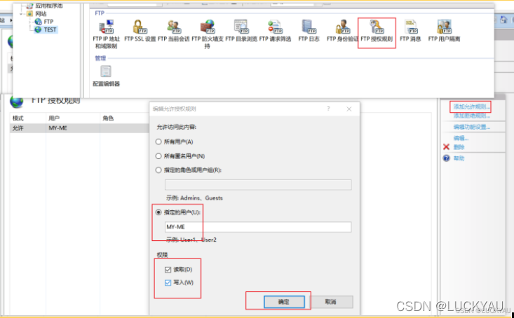 若需設置賬號密碼訪問,前期未設置,可以通過FTP授權規則進行設置