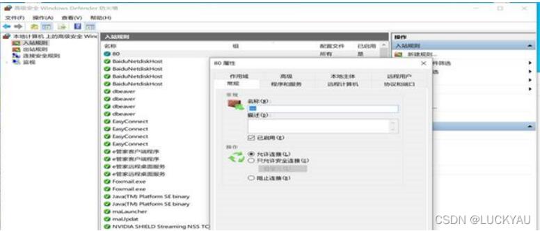 1)若打開了防火墻,需要將準入規則中將端口號開放;