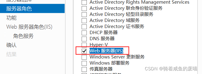 1.6、服務器角色-點擊勾選Web服務器(IIS)-點擊下一步
