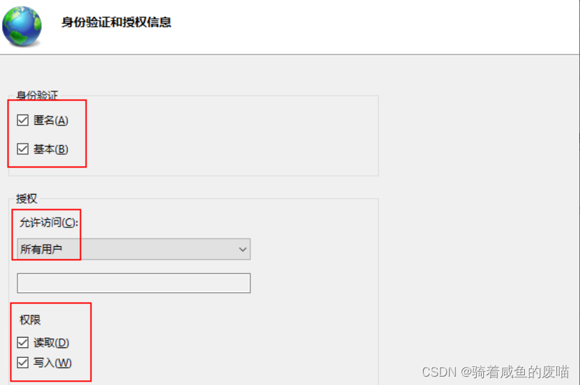 匿名、基本、所有用戶、權限根據需求配置