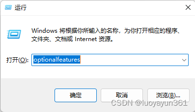 打開運行窗口【win+R】快捷鍵,輸入 optionalfeatures 后點擊確定: