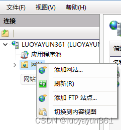 打開后在左側 “網站” 右鍵菜單 打開 “添加FTP站點”