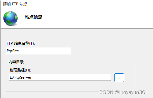 物理路徑記得填剛剛創建的Ftp根目錄文件夾路徑: