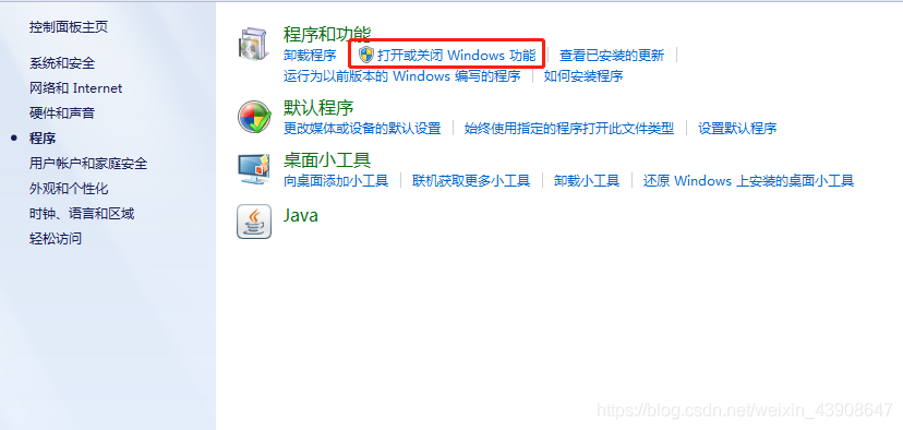 1.2 程序界面找到“啟用或關(guān)閉Windows功能”并打開