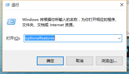 1.3 上面兩步也可以簡(jiǎn)化為一步:按【W(wǎng)in + R】快捷鍵打開運(yùn)行對(duì)話框,輸入“optionalfeatures”后,按回車鍵