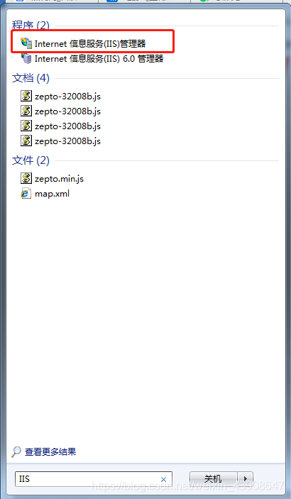 2.1 開始菜單搜索“IIS”并點(diǎn)擊進(jìn)入IIS管理器