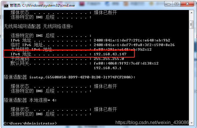 2.2.2 查看本機(jī)ip地址,后續(xù)訪問(wèn)Ftp地址需要用到(打開cmd輸入ipconfig)