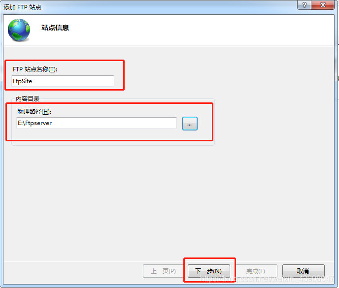 Ftp站點(diǎn)名稱和物理路徑設(shè)置