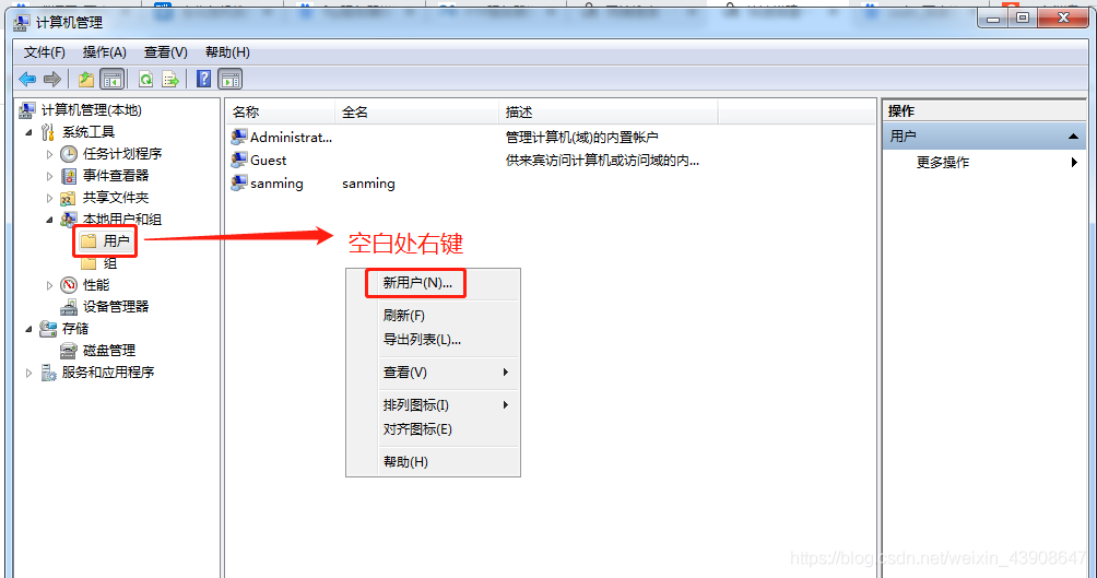 2.2.5 配置FTP站點(diǎn)用戶名和密碼,此電腦(桌面計(jì)算機(jī)圖標(biāo)右鍵)—>管理->本地用戶和組->用戶->新建一個(gè)用戶,并設(shè)置密碼