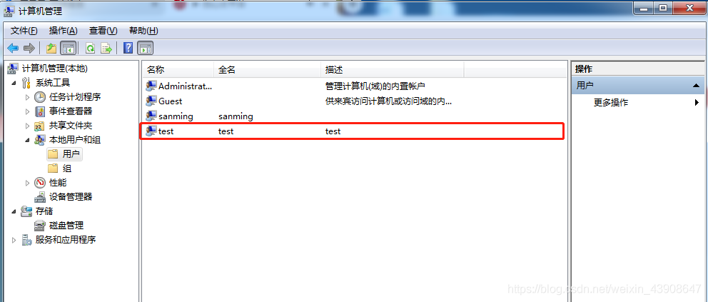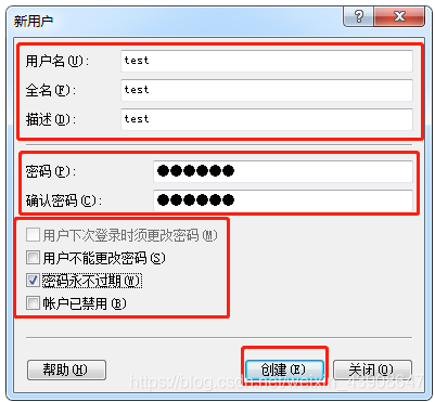 備注:細(xì)心的你可以能已經(jīng)發(fā)現(xiàn)這里的賬戶就是我們計(jì)算機(jī)的賬戶,所以說(shuō)我們應(yīng)該可以使用自己登錄電腦的用戶名和密碼來(lái)登錄FTP站點(diǎn),不用新建這個(gè)test用戶都可以。