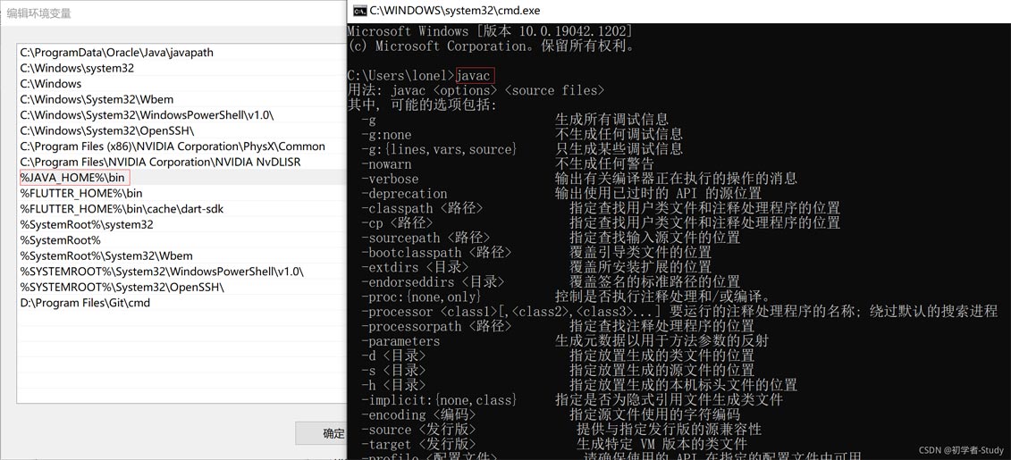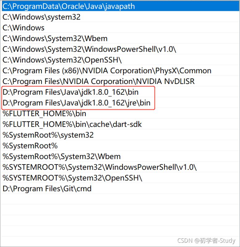 在這一步的時候比較多的人輸入javac之后會出現 不是內部或外部命令,也不是可運行的程序。 的情況,后面我也查看自己的環境變量,也一一輸入了java、javac、java -version的命令都是正常的。然后有讀者說我的系統變量中 Path 的內容少了一部分,然后我就去對比了其他人的博客內容,我的確少了一部分,但是我運行javac是正常的