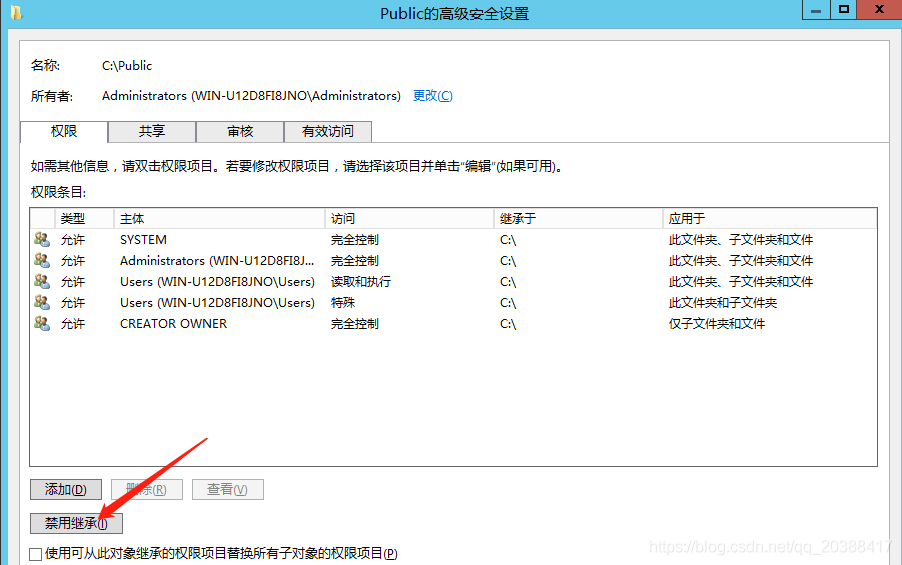 我們先禁用繼承,然后在添加自己要設定的用戶權限