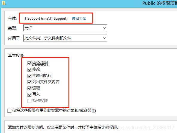 選擇要給的權限,我這里給的是完全控制權限,直接給IT Support這個組