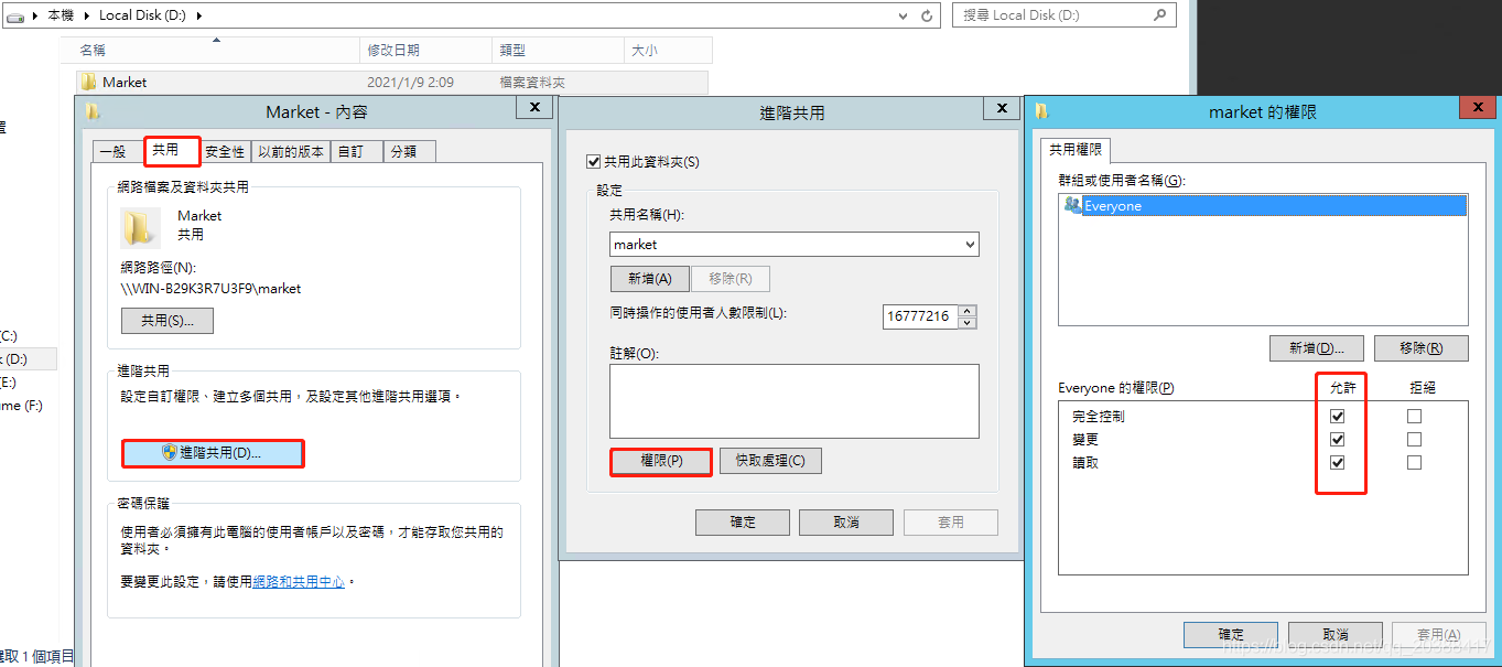 設置共享文件夾的權限屬性:
