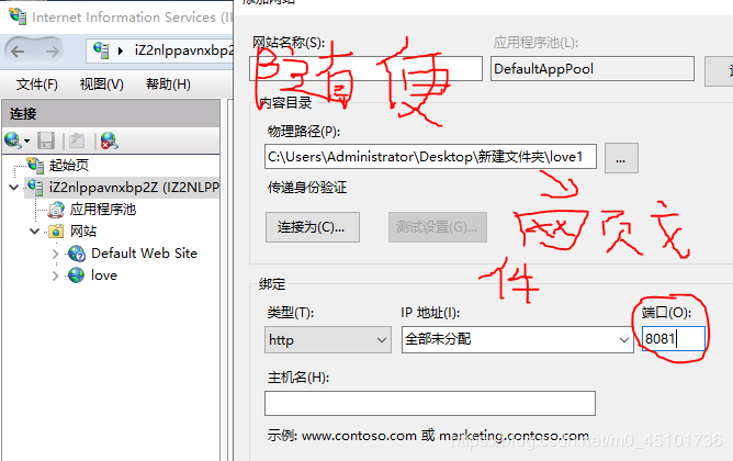 10.填寫信息,網站名稱建議英文,物理路徑即html的文件夾路徑(IP地址也可以填自己服務器的私有IP,也可不填)