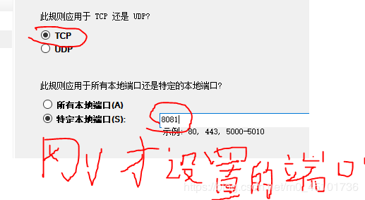 18.選擇TCP,特定本地端口號填自己發布的網站的端口號