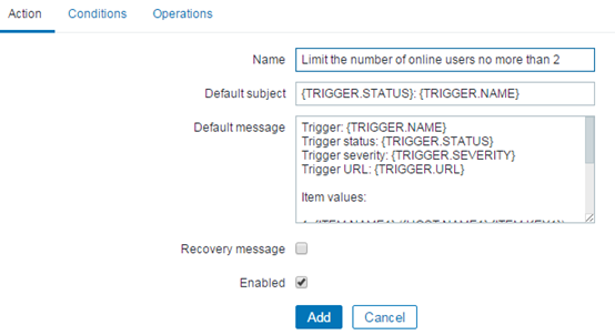 在Action選項中,定義Name:Limit the number of online users no more than 2