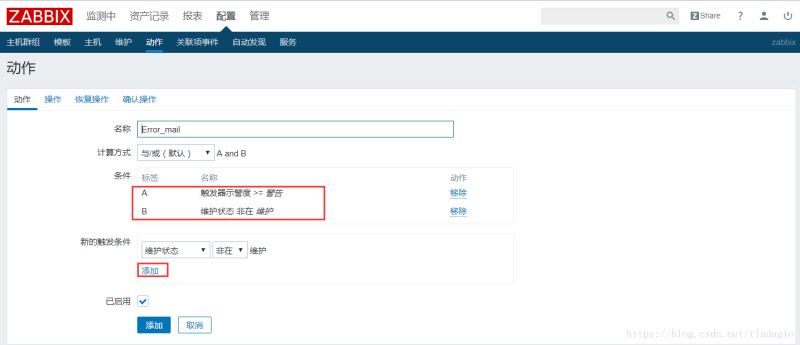 8、設置告警條件:配置-動作-創建動作