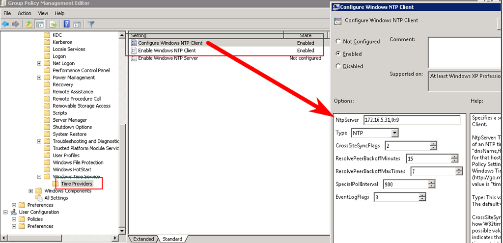 "配置Windows NTP客戶端",選擇"已啟用"。