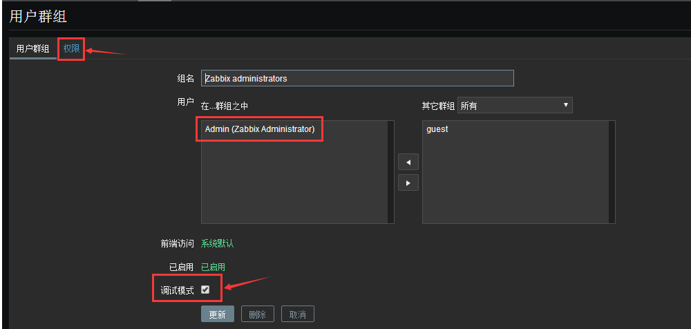 添加權(quán)限--管理--用戶群組--選擇Zabbix administrator組