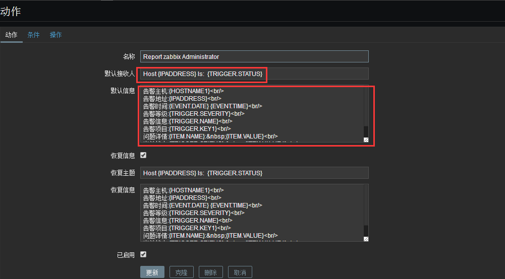 配置--動(dòng)作--編輯郵件發(fā)送操作