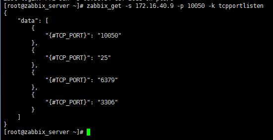執(zhí)行命令:zabbix_get -s 192.168.92.9 -p 10050 -k tcpportlisten