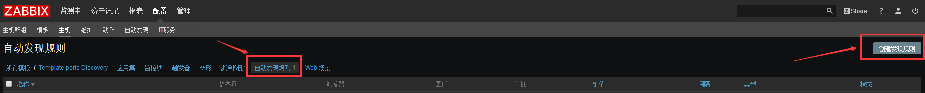 在上新創(chuàng)建的模板中點(diǎn)擊-->自動(dòng)發(fā)現(xiàn)規(guī)則-->然后選擇創(chuàng)建發(fā)現(xiàn)規(guī)則