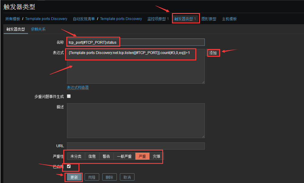 注意這里的表態(tài)示count(#3,0,eq) > 1表示最近3次的返回值為0,這個(gè)條件觸發(fā)一次則報(bào)警.